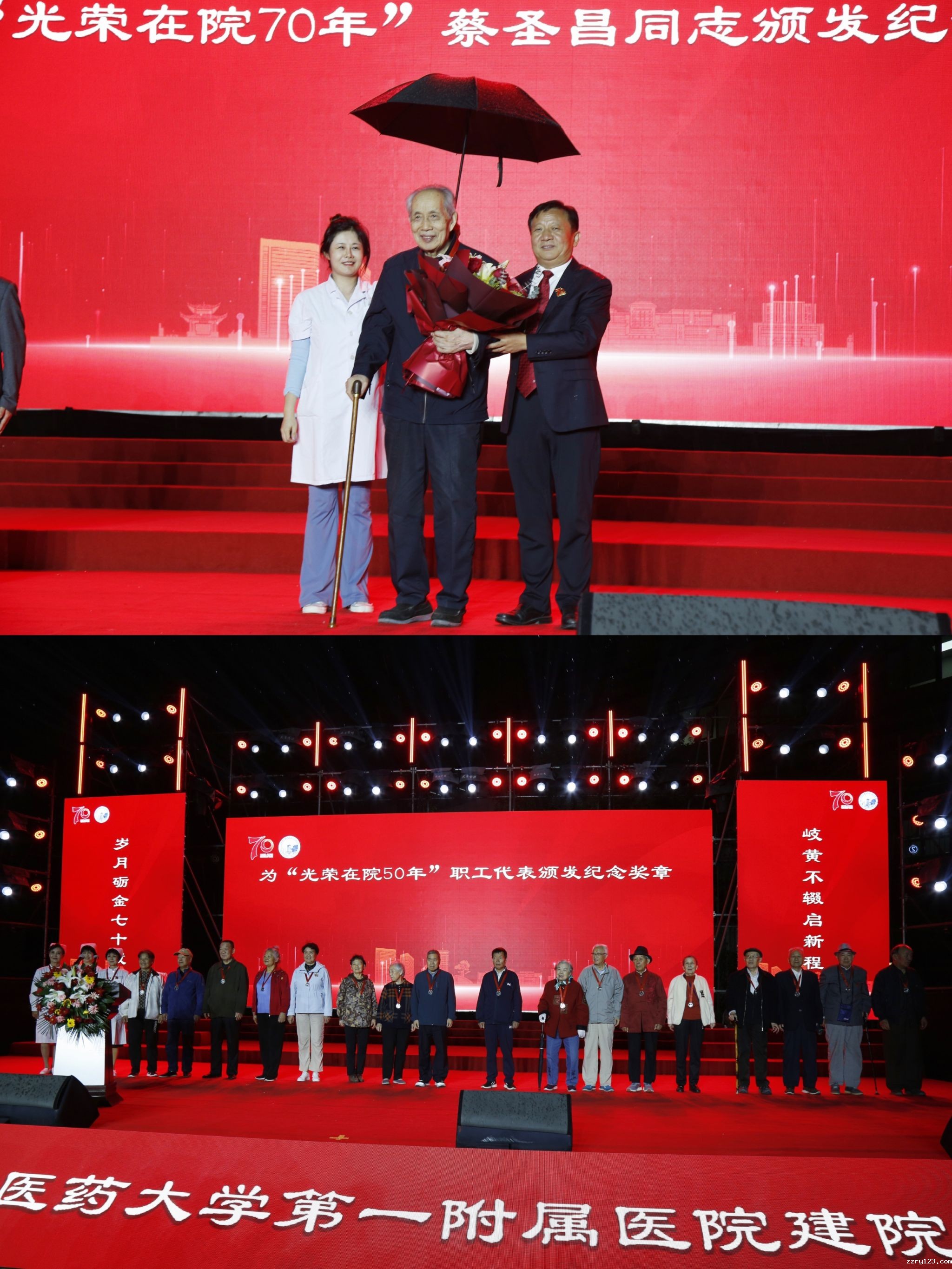 活动当天尽管下着雨,但难抵大家的欢庆热情。星空平台官网莱切战略伙伴二附院、三附院等省内外各兄弟医院代表,医院离退休老职工代表、教职工代表、媒体代表300余人齐聚现场共同见证这一重要时刻。大会以“线上+线下”相结合的方式进行,线上点赞人数近20万。
