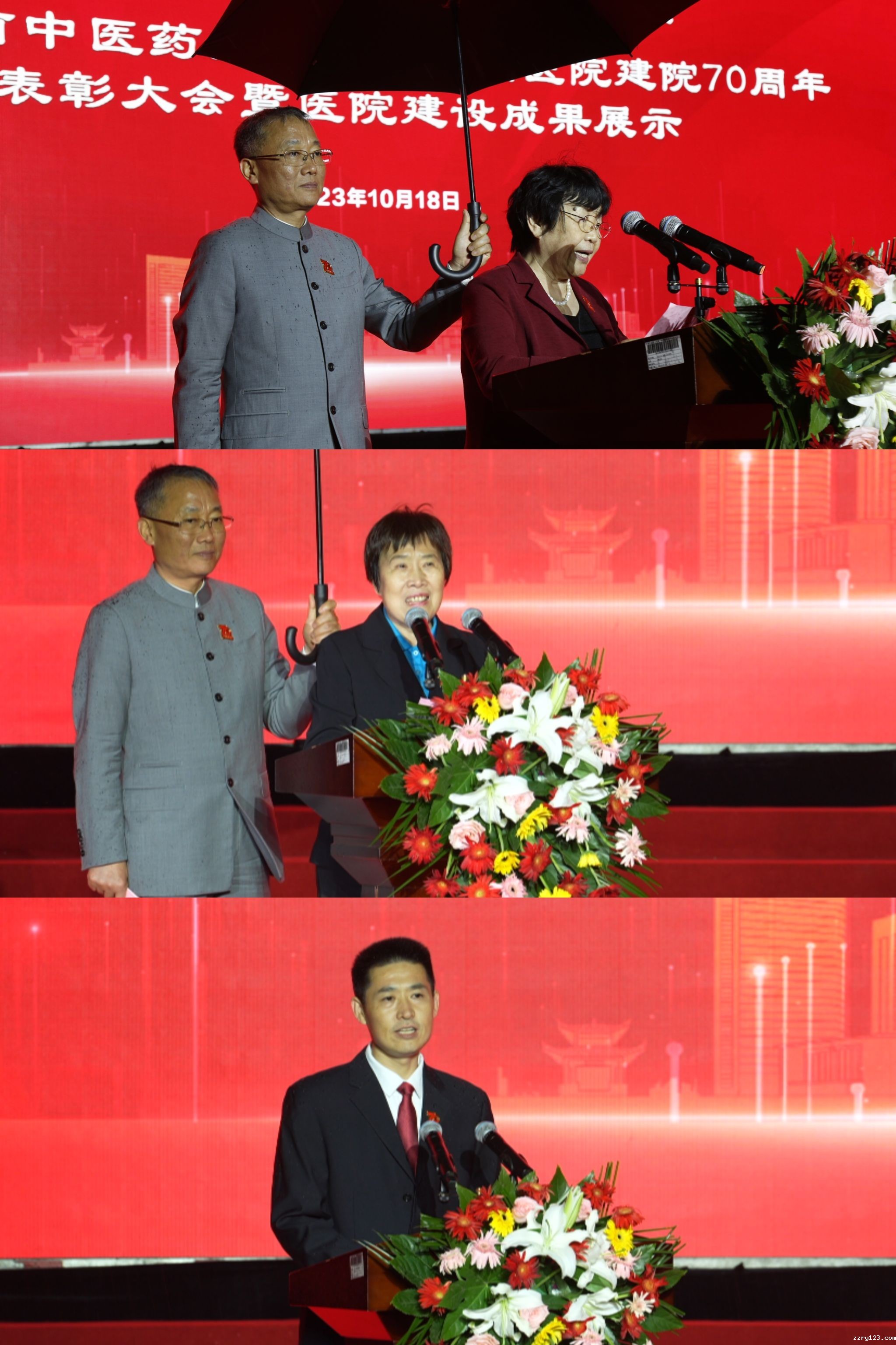 国医大师丁樱教授、全国名中医赵文霞教授、青年医师代表谢洋依次登台发言,从老、中、青三代人不同视角,讲述在时岁更替中初心接力,使命的赓续,表达对医院和中医药事业未来发展的期望和祝福。