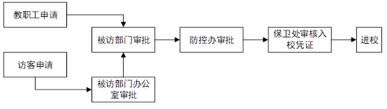 预约完成的访客进入校园时,主动出示进校凭证,保卫处人员核实进校凭证,对于持有已生效凭证的校外人员进行放行,其他凭证包括未生效、已失效以及冻结中的凭证不能入校。