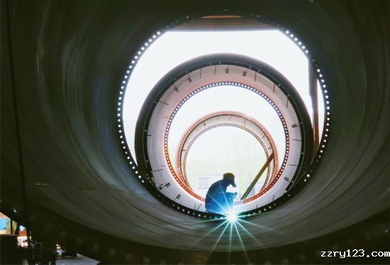 2023年一季度,我国国内生产总值同比增长4.5%,国民经济开局良好,为实现全年发展目标奠定了基础,注入了信心。图为2023年4月18日,工人在江苏连云港经济技术开发区一家公司内加工组装风电塔筒。 中新社发 耿玉和/摄