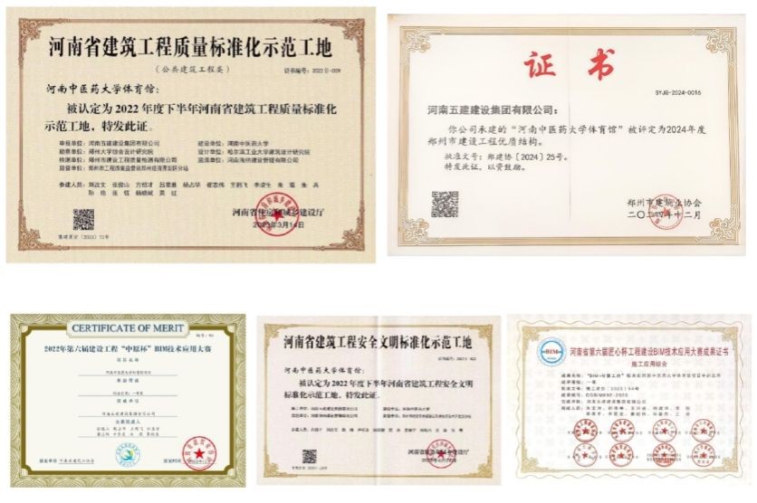 2.重点工作推进有力。一是学生综合实训中心工程,该工程是国家中西部高校基础能力建设(一期)项目。工程于2015年5月开工建设,2017年8月顺利竣工投入使用。项目建成和使用,进一步提升了我校实训教学条件。项目先后荣获“河南省工程建设优质结构工程”“河南省工程建设优质工程”“河南省重点建设安全文明工地”“河南省优秀勘察设计奖”等奖项。二是俊学综合实验楼工程,该工程是国家中西部高校基础能力建设(二期)项目。工程于2019年7月26日开工,于2022年7月顺利竣工投入使用。项目的建成使用进一步改善了学校办学条件,搭建了开放的中医药人才培养研究平台。项目先后荣获河南省一类民生工程、2021年度河南省工程建设安全文明工地、2022-2023年度河南省工程建设优质工程、2023年度河南高校优质工程奖。三是医学实验动物中心工程,该工程是国家中西部高校基础能力建设(二期)项目,于2018年8月开工建设,于2020年8月26日通过竣工验收。该项目建设规模、设施设备、工艺流程等在省内高校均处于领先地位。项目的建成,为提升学校教学科研能力和人才培养实践体系提供了硬件保障,得到了省教育厅、省发改委的高度评价。四是12号学生宿舍楼工程,该工程于2021年1月开工建设,于2022年4月如期竣工。工程完成时,恰逢书院制改革当口,不仅改善了学生住宿条件,还为“一站式”学生社区综合管理模式建设提供了有力硬件支撑。项目先后荣获郑州市2022年工程建设全面质量管理优秀QC小组一等成果奖、2023年度河南高校优质工程。五是师生活动中心工程,该工程是校友捐建项目,于2023年3月顺利通过五大责任主体验收,基建处配套完成室外铺装、绿化等工程。工程为学校师生“一站式”服务大厅和离退休干部活动中心提供了硬件支持。六是药用植物园景观提升项目,该项目于2022年7月开工建设,2024年8月通过五大责任主体验收。项目为校园打造了又一处具有中医药文化特色的亮丽景观。七是体育馆工程,该工程于2021年6月开工建设,项目主体、外幕墙、消防、智能化、10KV供配电、电梯、换热站等施工基本完成,室内安装、装饰工程正在加紧施工,预计2025年上半年竣工。项目先后荣获河南省一类民生工程、河南省安全文明标准化示范工地和质量标准化示范工地、河南省第六届建设工程“中原杯”BIM技术应用大赛一等奖、2024年度郑州市建设工程优质结构奖等荣誉。