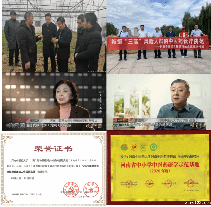 在人才培养的同时,学院聚焦行业产业发展,紧紧围绕服务国家战略和区域经济社会发展,以高水平科学研究不断增强科技创新和社会服务能力。现有省中药材产业技术体系首席专家1人、省首席科普专家3人,起草中药材质量标准20个、行业规范6个。作为第四次全国中药资源普查河南中药资源普查任务依托单位,服务于我省各级部门的中药行业发展规划与政府决策。助力艾草等 90多个大宗品种药材规范化种植,服务全省18地市,年产值达200多亿元。学院组建的河南省中药材产业科技特派员服务团在河南省脱贫攻坚工作中做出杰出贡献,给予记大功的表彰。研究生乡村振兴服务项目入选省暑期“三下乡”社会实践活动优秀品牌项目和省高校思想政治工作优秀品牌。积极传承和弘扬中医药文化,作为全国中药特色技术传承人才培训单位,近年来已举办15期培训班,培训学员812人,中药植物园被评为河南省中小学中医药研学示范基地。