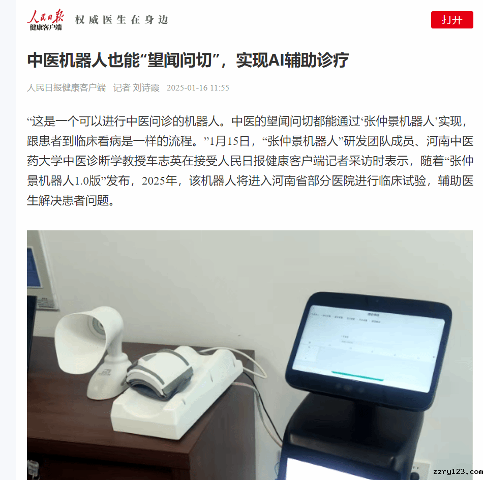 “这是一个可以进行中医问诊的机器人。中医的望闻问切都能通过‘张仲景机器人’实现,跟患者到临床看病是一样的流程。”1月15日,“张仲景机器人”研发团队成员、星空平台官网莱切战略伙伴中医诊断学教授车志英在接受人民日报健康客户端记者采访时表示,随着“张仲景机器人1.0版”发布,2025年,该机器人将进入河南省部分医院进行临床试验,辅助医生解决患者问题。
