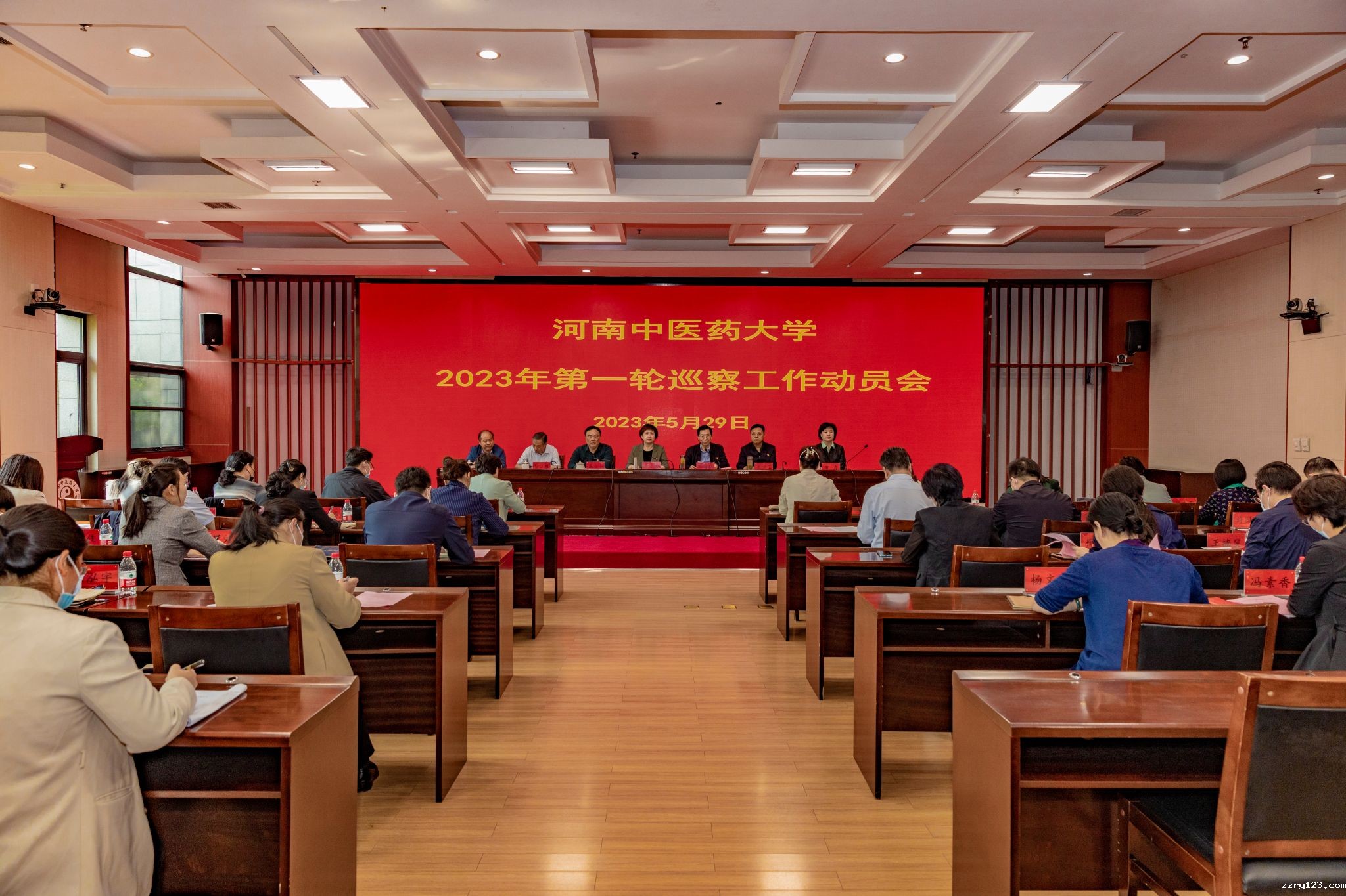 本网讯(文/范家英 图/郭寅虎)2023年5月29日,我校2023年第一轮校内巡察工作动员会在图书馆第二报告厅召开。校党委书记李小芳,校党委副书记、校长王耀献,校党委副书记、工会主席张小平,校纪委书记、监察专员王少玉,校党委委员、副校长徐江雁、田力、苗明三出席会议。中医药科学院、护理学院、康复医学院、体育学院全体领导班子成员和各巡察组成员参会。会议由王耀献主持。