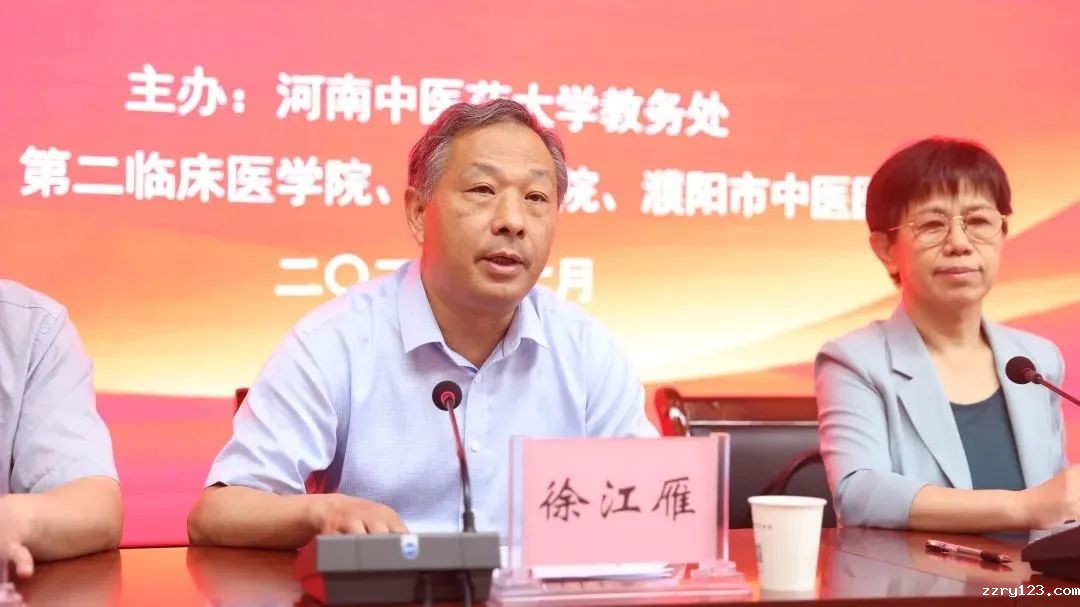 会上,濮阳市中医院院长刘同坤代表濮阳市中医院向与会人员表示诚挚的欢迎,他表示将以本次会议为契机,不断深化交流与合作,进一步加强人才培养和学科建设,全面提升医教研能力和水平。徐江雁对会议召开表示祝贺,并提出三点希望:一是各基地要高度重视本次培训工作,精心安排,认真组织;二是参会代表要认真学习,深入思考,广泛交流,通过培训更新教育教学理念,改进教学方法,切实提高执教水平;三是学校各部门要沟通配合,为带教老师们的教师资格考试、职称转评做好服务,促进医、教、研成绩突出者尽快脱颖而出,为中医药事业发展培养出更多高素质人才做出应有的贡献。李豫秋代表濮阳市卫生健康委对大会的召开表示祝贺,希望市中医院以此次承办培训为契机,继续加强基地内涵建设,推动住培质量稳步提升,培养出更加合格、优秀的中医学子。