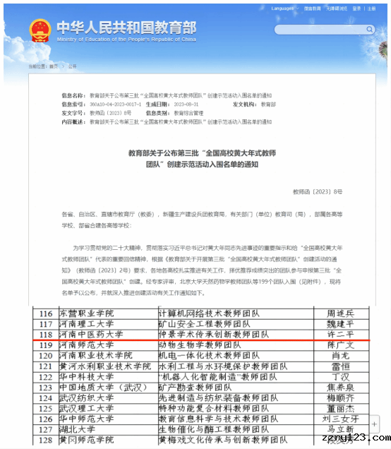 我校仲景学术传承创新教师团队入选“全国高校黄大年式教师团队”