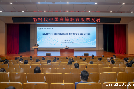 报告会上,管培俊教授以《新时代中国高等教育改革发展》为题,从我国高等教育取得的历史性成就、高等教育高质量发展、高等教育综合改革等方面进行了深入阐述,强调了“放管服”改革、教育教学改革、人事改革、教育评价改革、科教融合、学科布局优化调整等在新时代中国高等教育改革发展中的重要作用,提出了高校要应对世界格局的深刻变化与严峻挑战,顺应科技革命和产业变革演进趋势,把握世界高等教育发展变革方向,服务国家发展大局,并就我国高等教育综合改革问题提出了重要的思考和建议。