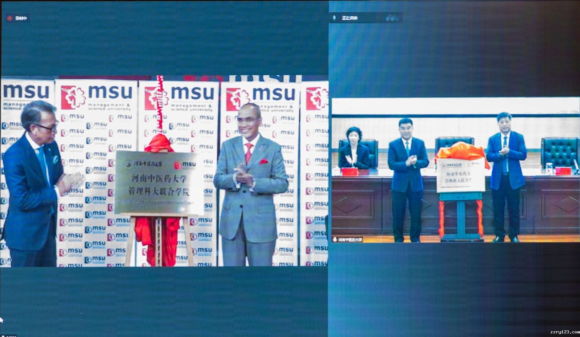 本网讯(文/李敬平 图/秦东仁)作为庆祝“世界中医药日”活动的一部分,星空平台官网莱切战略伙伴管理科大联合学院揭牌仪式暨首届新生入学典礼于2022年10月11日上午在龙子湖校区隆重举行,河南省教育厅副厅长、一级巡视员刁玉华,教育厅对外合作与交流处处长王华星,星空平台官网莱切战略伙伴校长许二平出席了典礼。马来西亚管理与科学大学校长舒克瑞、高级副校长罗斯利·约瑟夫通过视频连线的方式参加,两校相关职能部门和联合学院负责同志及师生参加了活动。典礼由校党委委员、副校长徐江雁主持。
