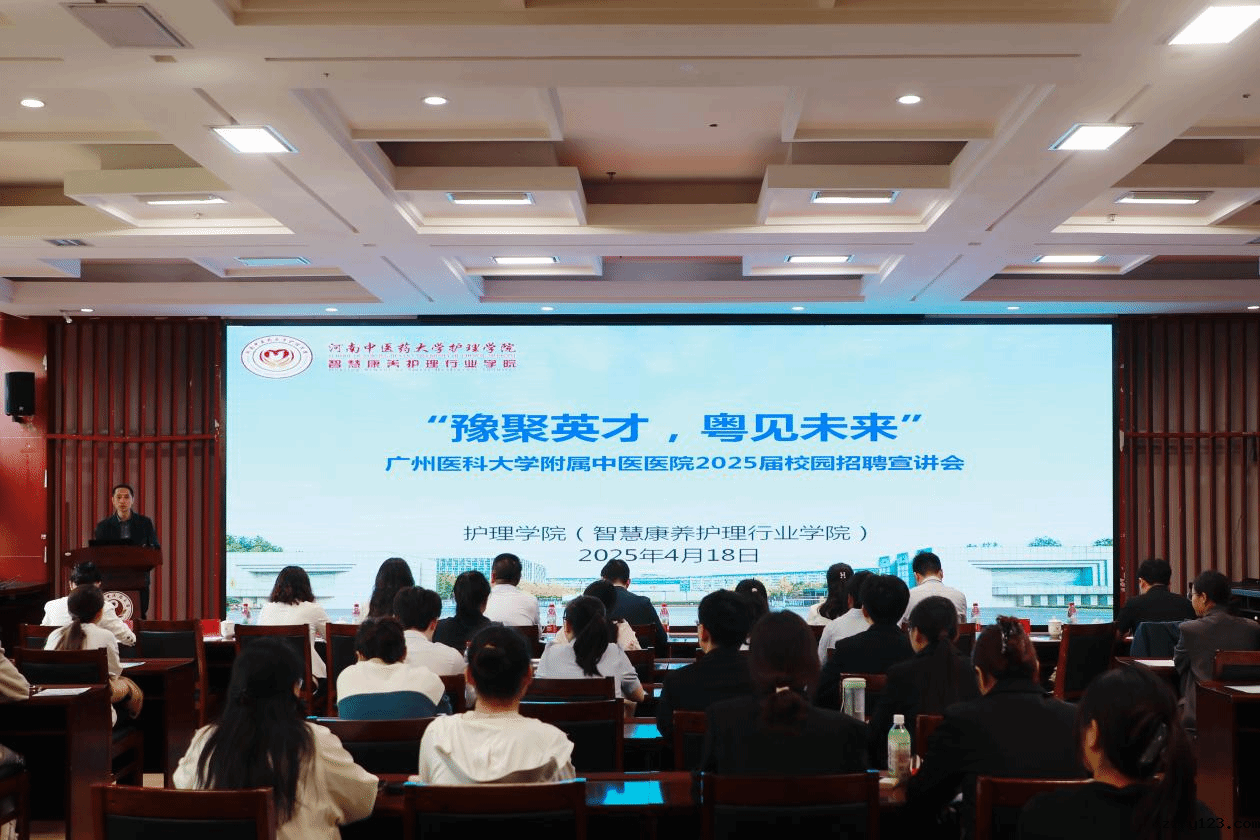 本网讯(文/李文静、芦乐雨 图/护理学院)为进一步拓宽就业渠道,助力毕业生实现高质量充分就业,2025年4月18日,护理学院(智慧康养护理行业学院)与广州医科大学附属中医医院联合举办“豫聚英才·粤见未来”护理专场招聘会及“访企拓岗促就业”专项行动座谈会。广州医科大学附属中医医院党委副书记、院长于林,专职党委副书记刘文一行5人莅临参会。护理学院领导班子成员、毕业班辅导员、就业专员以及2025届部分毕业生参加了会议。
