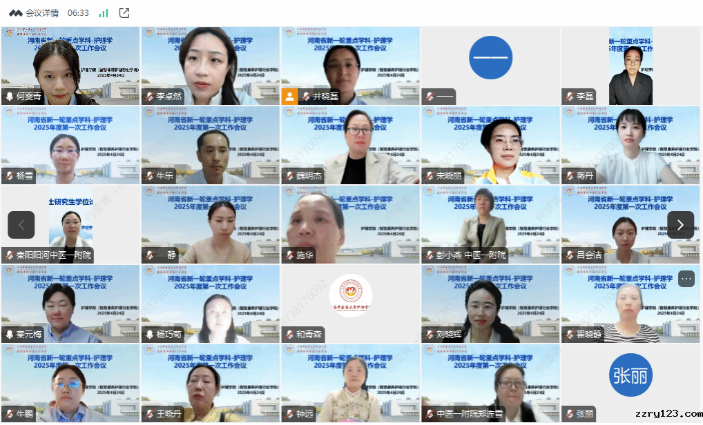 本网讯(文/图 何雯青)为深化护理学重点学科内涵建设,提升科研创新能力与师资专业化发展水平,2025年4月24日,新一轮河南省重点学科-护理学以线上形式召开2025 年度第一次工作会议。护理学院(智慧康养护理行业学院)领导班子成员、重点学科四个研究方向的负责人、秘书及骨干成员参会,会议由秦元梅院长主持。
