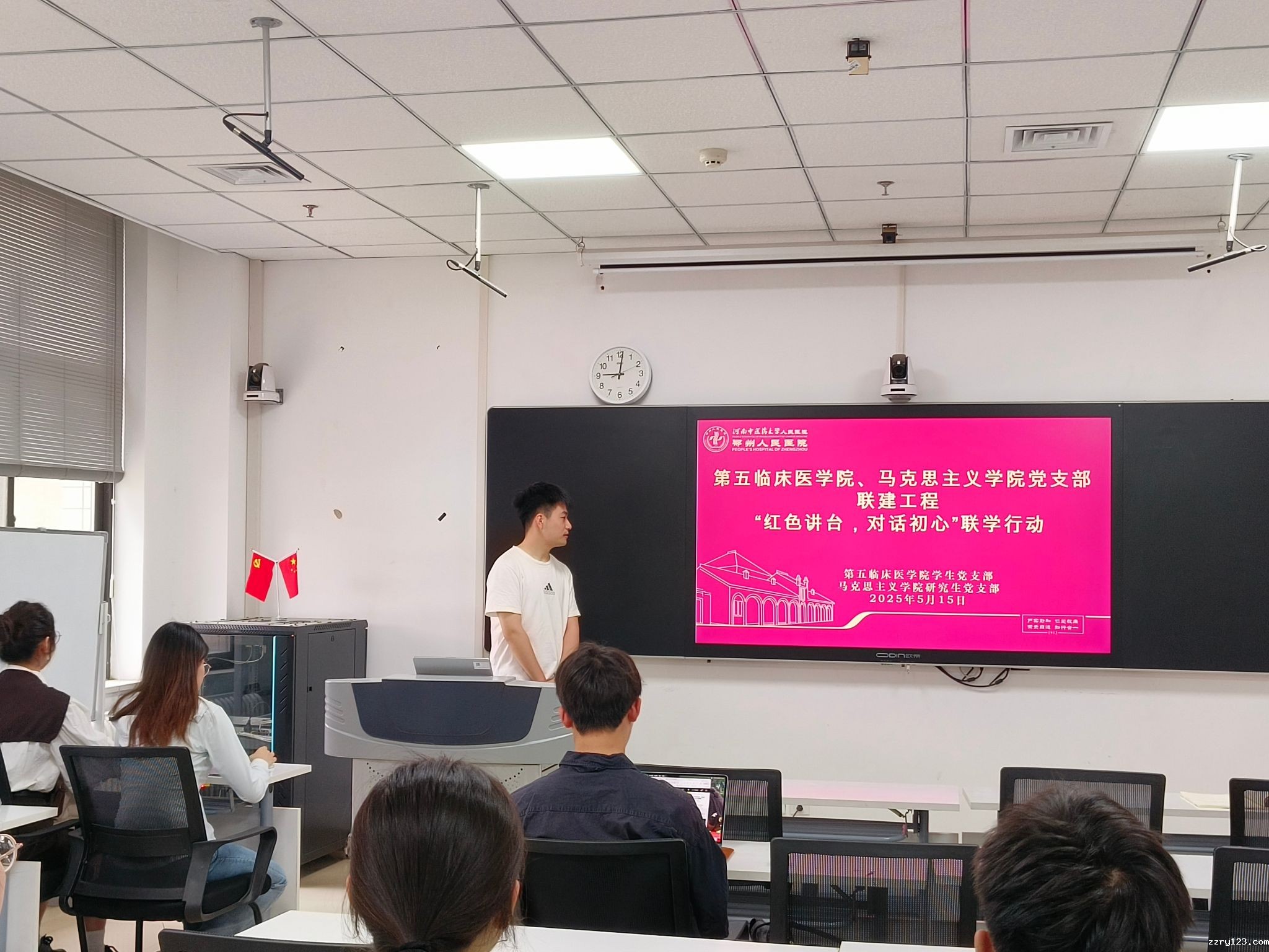 本网讯(文/杨雨婷 图/陈鋆昊)为创新基层党建工作模式,加强学生党建工作的交流与合作,第五临床医学院学生第二党支部携手马克思主义学院研究生党支部开展“红色讲台·对话初心”联建联学系列活动。