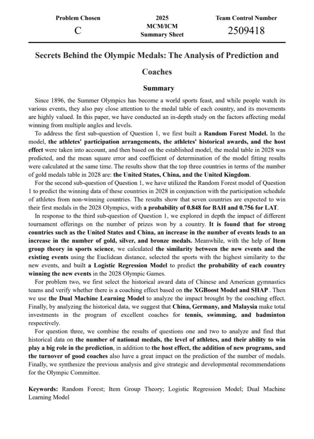 参赛论文摘要