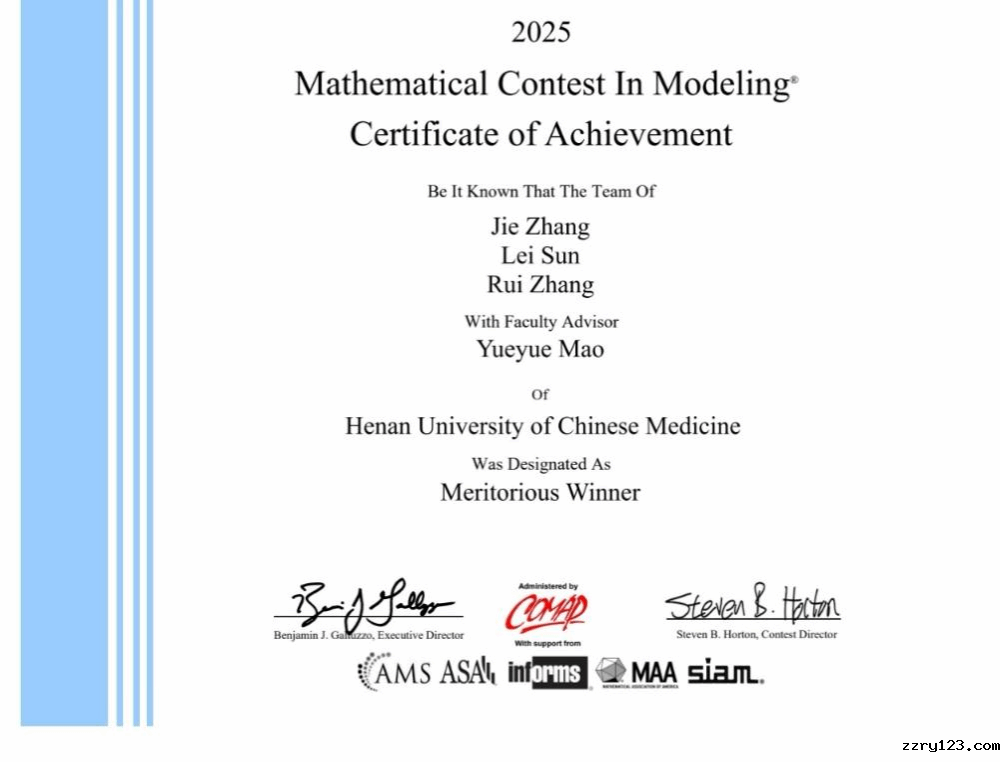 2025年美国大学生数学建模竞赛获奖证书