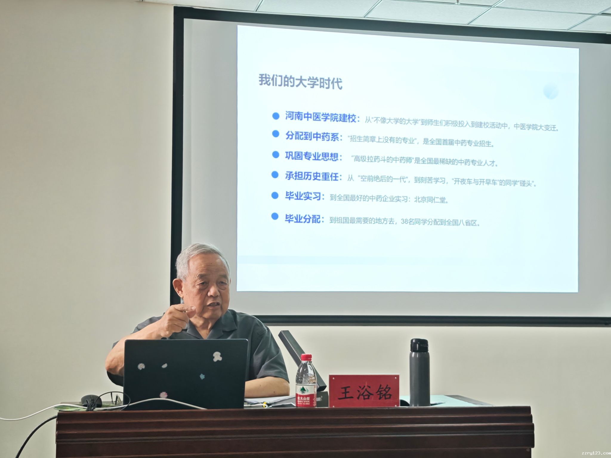 本网讯(文/图 郭静)为认真贯彻落实党中央关于关心下一代工作的决策部署和习近平总书记重要指示精神,进一步彰显“五老”队伍在落实立德树人根本任务中的独特优势与重要作用,积极引导广大青年树立正确的世界观、人生观和价值观,2025年6月10日,由校关工委主办、药学院联合本草书院关工委承办的“关爱大讲堂”在实验楼BN617会议室举行。我校退休教授王浴铭以《我的药学之路——谈谈我66年来教学与科研中的故事》为题作专题报告。药学院及本草书院80余名本硕博学生参加活动。