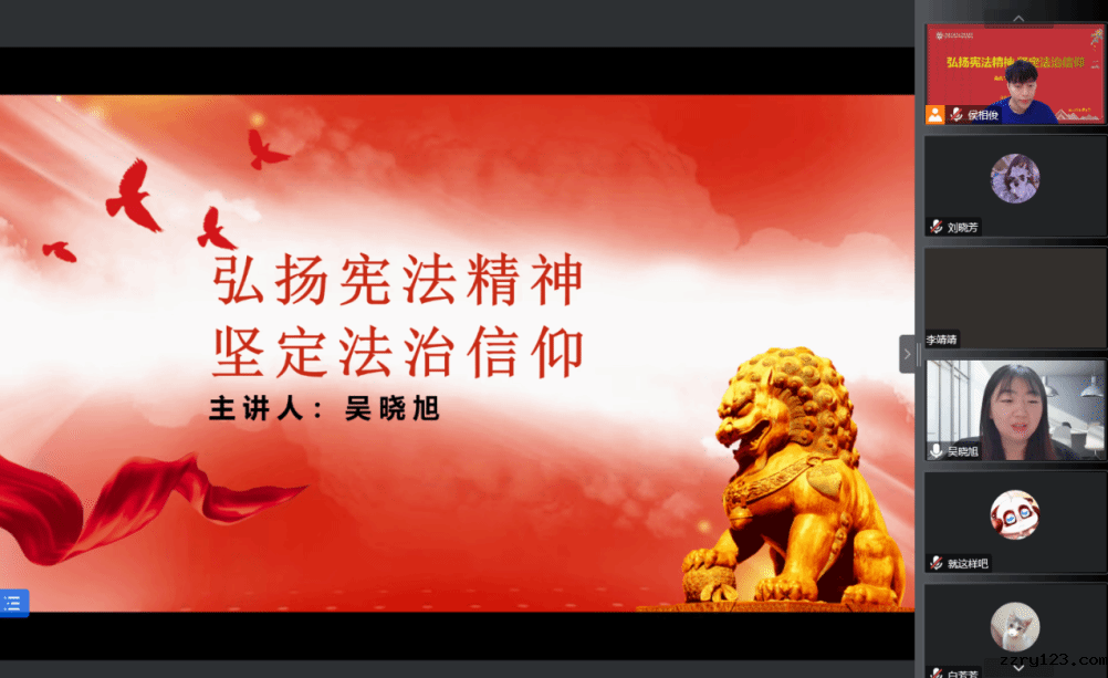 形式丰富多样,活动效果显著。12月2日,尚真书院特邀学校管理学院讲师、中南财经政法大学法学博士吴晓旭老师,通过腾讯会议的形式,为书院师生开展了题目为《弘扬宪法精神 坚定法治信仰》的宪法宣讲会。深入浅出的宣传了宪法法律知识,引导广大师生了解宪法知识,理解宪法内涵。尚真书院师生及管理学院MPA研究生都积极参与并在会上踊跃发言。