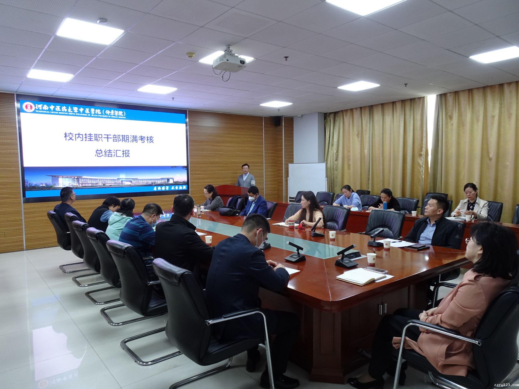 本网讯(文/图 史占江)2023年5月5日,中医学院(仲景学院)召开第二批校内挂职期满干部考核工作会。学院全体领导班子成员、党支部书记、科室主任参加会议。学院党委副书记徐里主持会议。