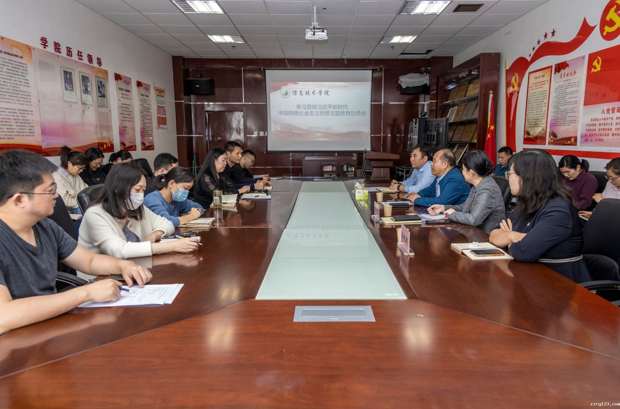 本网讯(文/高海波 图/郭寅虎)2023年4月18日,信息技术学院召开学习贯彻习近平新时代中国特色社会主义思想主题教育动员会。学校党委委员、副校长苗明三到会指导。信息技术学院领导班子成员、全体教师参加会议。会议由学院党委书记马赟主持。
