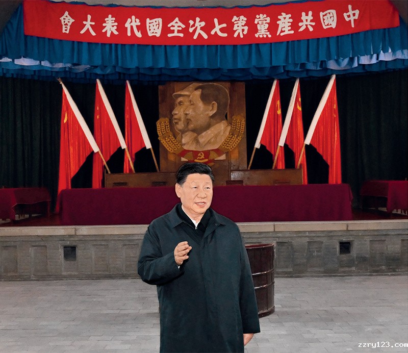 2022年10月27日,中共中央总书记、国家主席、中央军委主席习近平带领中共中央政治局常委李强、赵乐际、王沪宁、蔡奇、丁薛祥、李希,瞻仰延安革命纪念地。这是习近平在杨家岭瞻仰中共七大会址。新华社记者 燕雁 摄