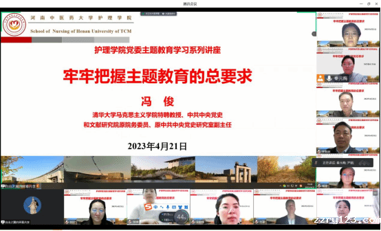 本网讯(文/刘文 图/秦元梅)2023年4月21日,为深入开展学习贯彻习近平新时代中国特色社会主义思想主题教育,护理学院组织全院师生党员开展专题学习培训活动。培训特邀校主题教育第四联络组成员张顺超、李超线上共同观看了清华大学马克思主义学院特聘教授、中共中央党史和文献研究院原院务常委、原中共中央党史研究副主任冯俊讲授的网上公益课程《牢牢把握主题教育的总要求》。
