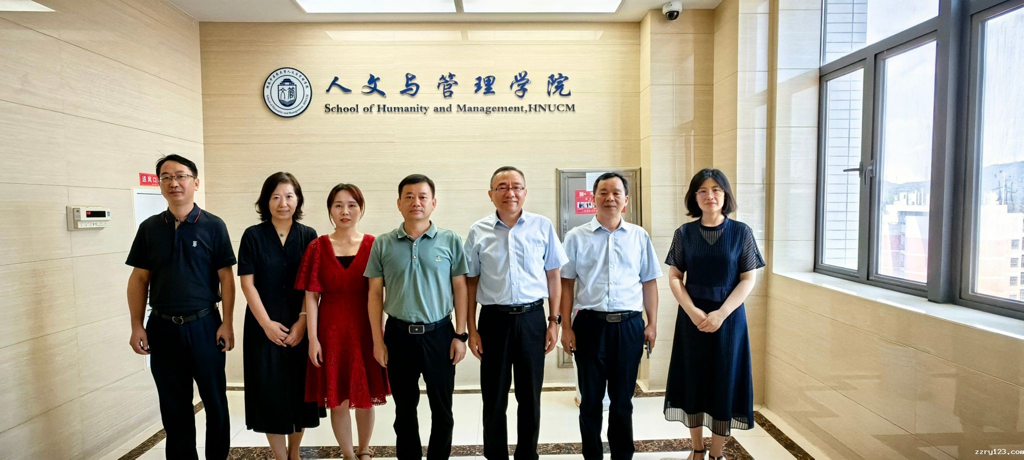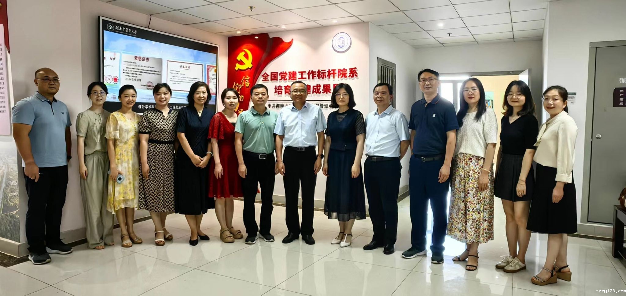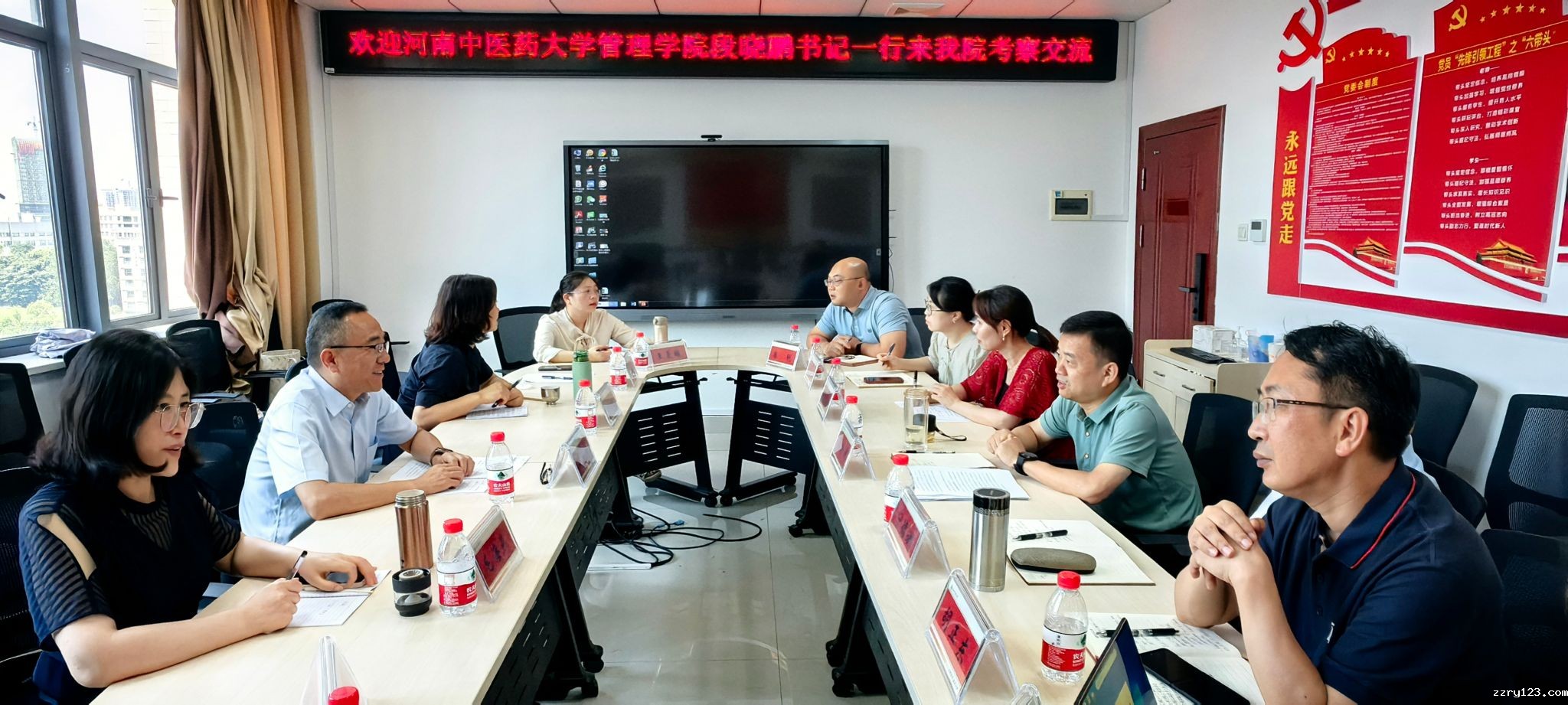 本网讯(文图/黄璐)为深入推进主题教育,大兴调查研究之风,做好同行之间在党建和事业发展方面的交流互鉴,2023年7月9日,管理学院党委书记段晓鹏,副院长王孺、毛海燕带领学院党政办、教学办、科研与研究生办负责人一行7人赴湖南中医药大学人文与管理学院调研交流。湖南中医药大学人文与管理学院院长夏新斌,党委副书记雷秋红,副院长宁德斌、胡正东及相关科室负责人参加了座谈交流。会议由夏新斌主持。