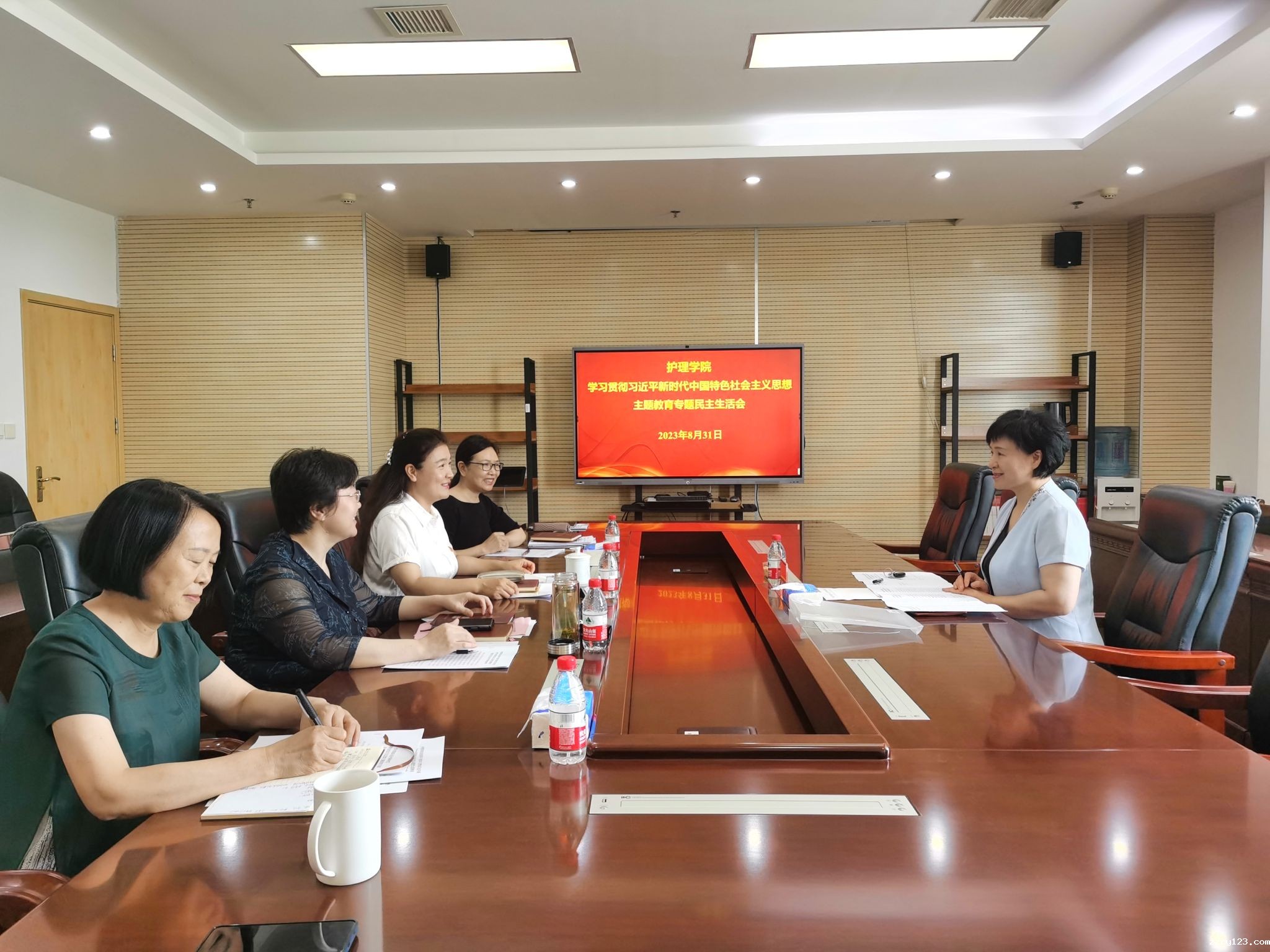 本网讯(文/图 杨雪)按照学校党委部署要求,2023年8月31日,护理学院在教学楼BS704会议室召开学习贯彻习近平新时代中国特色社会主义思想主题教育专题民主生活会。校党委委员、副校长田力到会指导。会议由院党委书记尹丽主持。