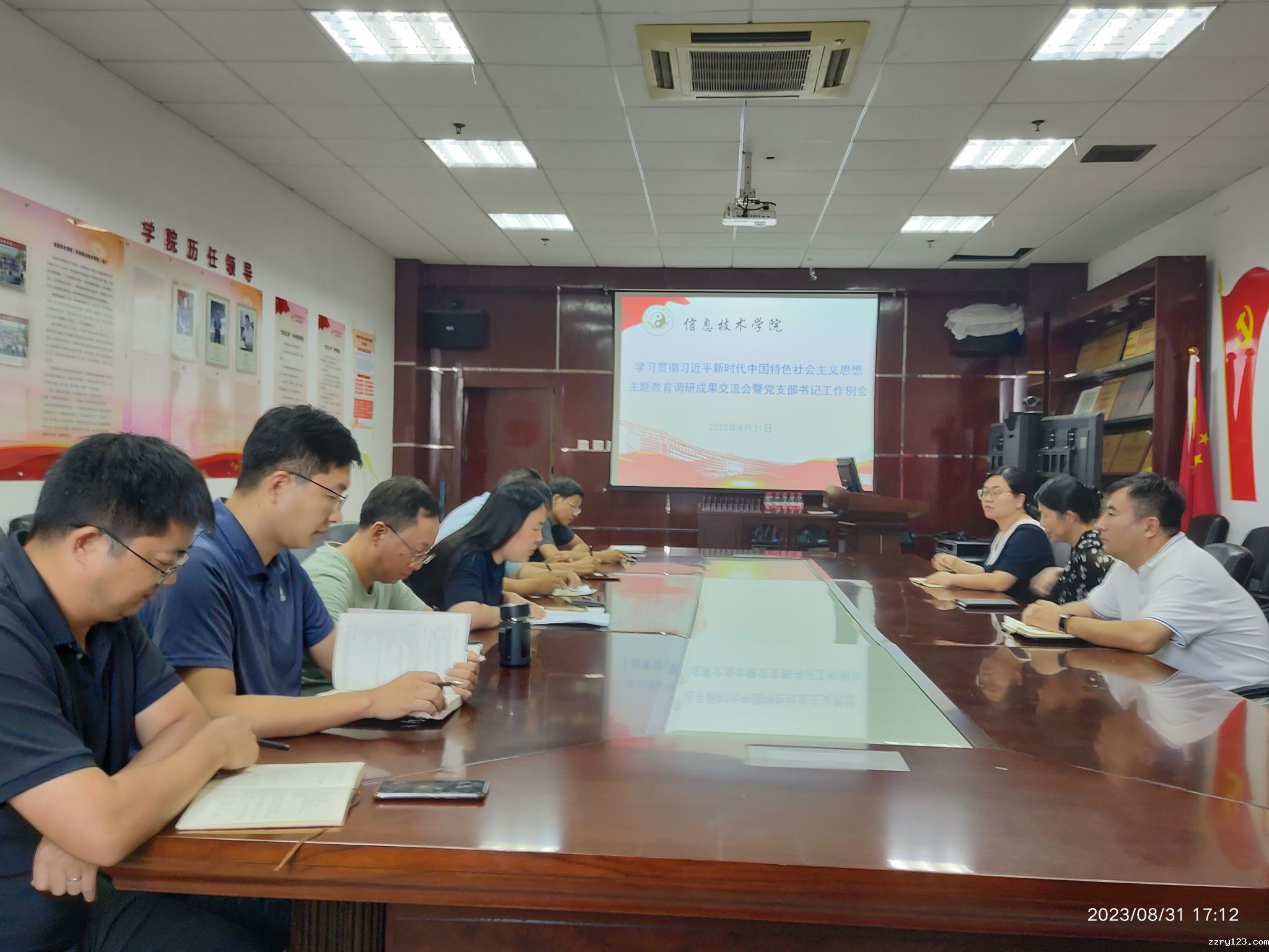本网讯(文图/高海波)2023年8月31日,信息技术学院主题教育第二次调研成果交流会暨党支部书记工作例会在教学实验大楼A722室召开。学院全体领导班子成员、各职能科室负责人、各党支部书记参加,会议由学院党委书记马赟主持。