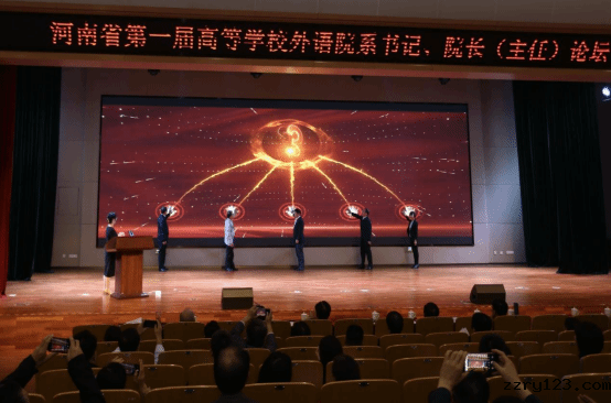河南省教育厅、教育部高等学校外国语言文学类教学指导委员会、省高等教育学会外语分会、省外国语言文学类教学指导委员会、外语教学与研究出版社领导共同按下启动按钮,2023“外研社·国才杯”“理解当代中国”全国大学生外语能力大赛河南省省赛正式启动。