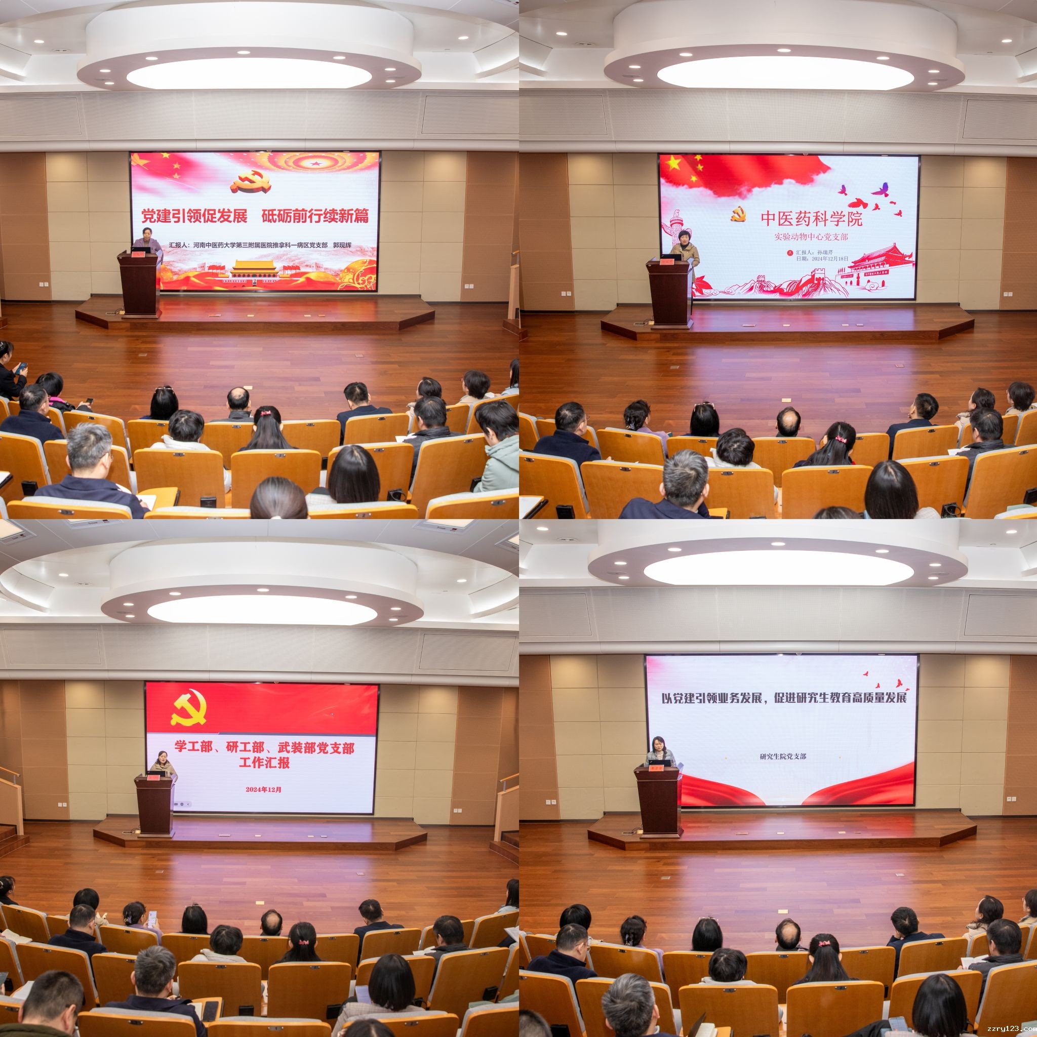 支部互学互鉴展示环节,学校国家级样板支部代表第三附属医院推拿科一病区支部书记郭现辉、省级样板支部代表中医药科学院动物实验中心党支部书记孙瑞芹、机关学工部、研工部、武装部党支部书记郭婧、机关研究生院党支部青年统战委员栗彦芳等4位同志,分别围绕党支部政治建设、组织建设、作风建设、党员先锋作用发挥、支部特色、创新工作方法等方面依次进行了工作经验交流发言,并对下一阶段的支部建设和创新载体等工作思路进行展望和探讨。