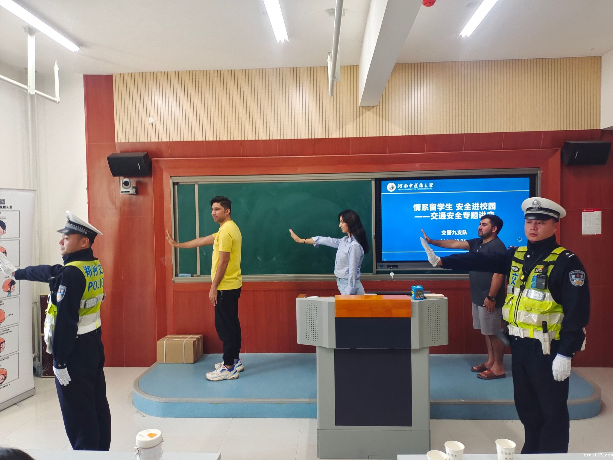 本网讯(文/图 李佳贞)为进一步加强来华留学生的交通安全意识,提高他们对中国交通法律法规的理解,应国际教育学院邀请,10月24日下午,郑州交警九支队为来华留学生举办了“情系留学生 安全进校园”交通安全专题讲座。学院党总支副书记潘万旗,留学生工作办公室老师及在郑留学生参与了此次讲座。