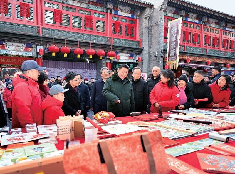2024年2月1日至2日,中共中央总书记、国家主席、中央军委主席习近平来到天津,看望慰问基层干部群众。这是1日下午,习近平在天津古文化街考察时,同店铺员工和现场群众互动交流。