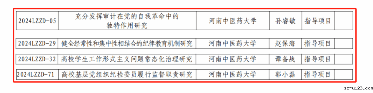 经各高校纪委、省辖市纪委监委驻市教育局纪检监察组初审,驻省教育厅纪检监察组组织专家匿名评审、会议评审,2024年度河南省廉政专题研究项目确定立项122项,其中委托项目2项,一般项目45项,指导项目75项。我校获批4项,立项数为历年最高,在全省教育系统排名第三。