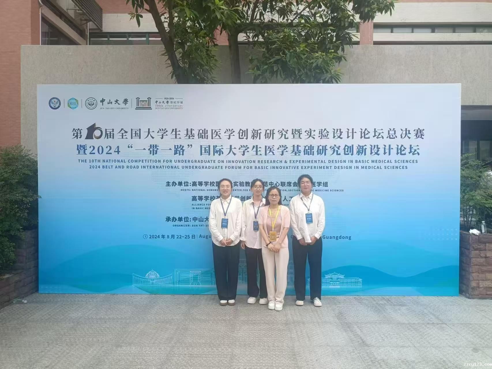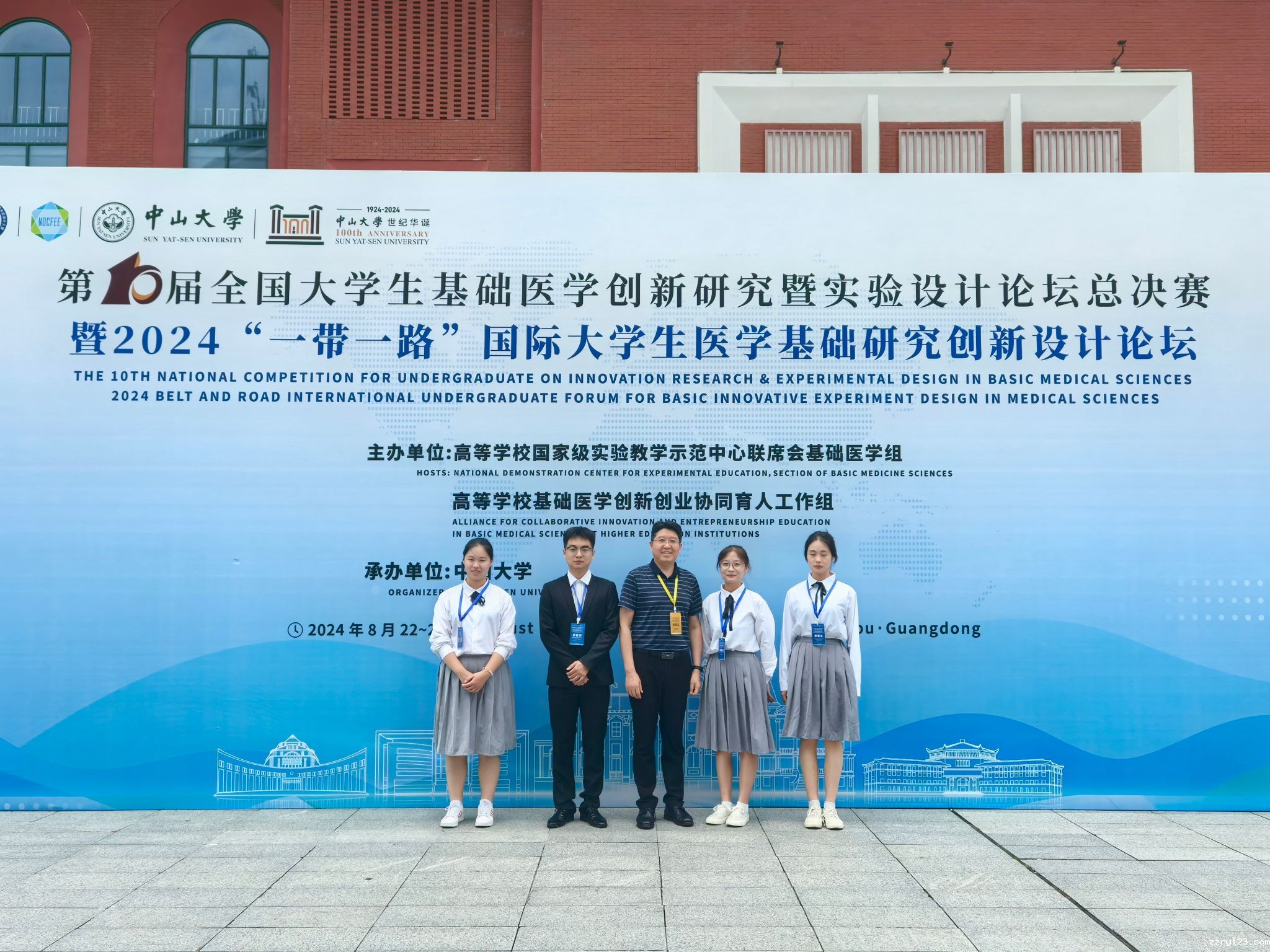本网讯(文/图 王瑾瑾)2024年8月22日至8月25日,由高等学校国家级实验教学示范中心联席会基础医学组、高等学校基础医学创新创业协同育人工作组主办、中山大学承办的第十届全国大学生基础医学创新研究暨实验设计论坛总决赛在广州举行。医学院参赛的3项作品,在总决赛中斩获金奖1项、铜奖2项,继获得第九届大赛金奖之后再创辉煌,为我校争得了荣誉。
