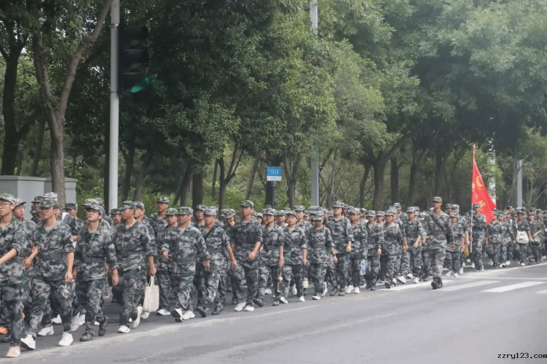 早晨6时,天际渐明,新生们集合完毕。在简短的动员誓师后,千余名学生整理队列,向既定路线进发。