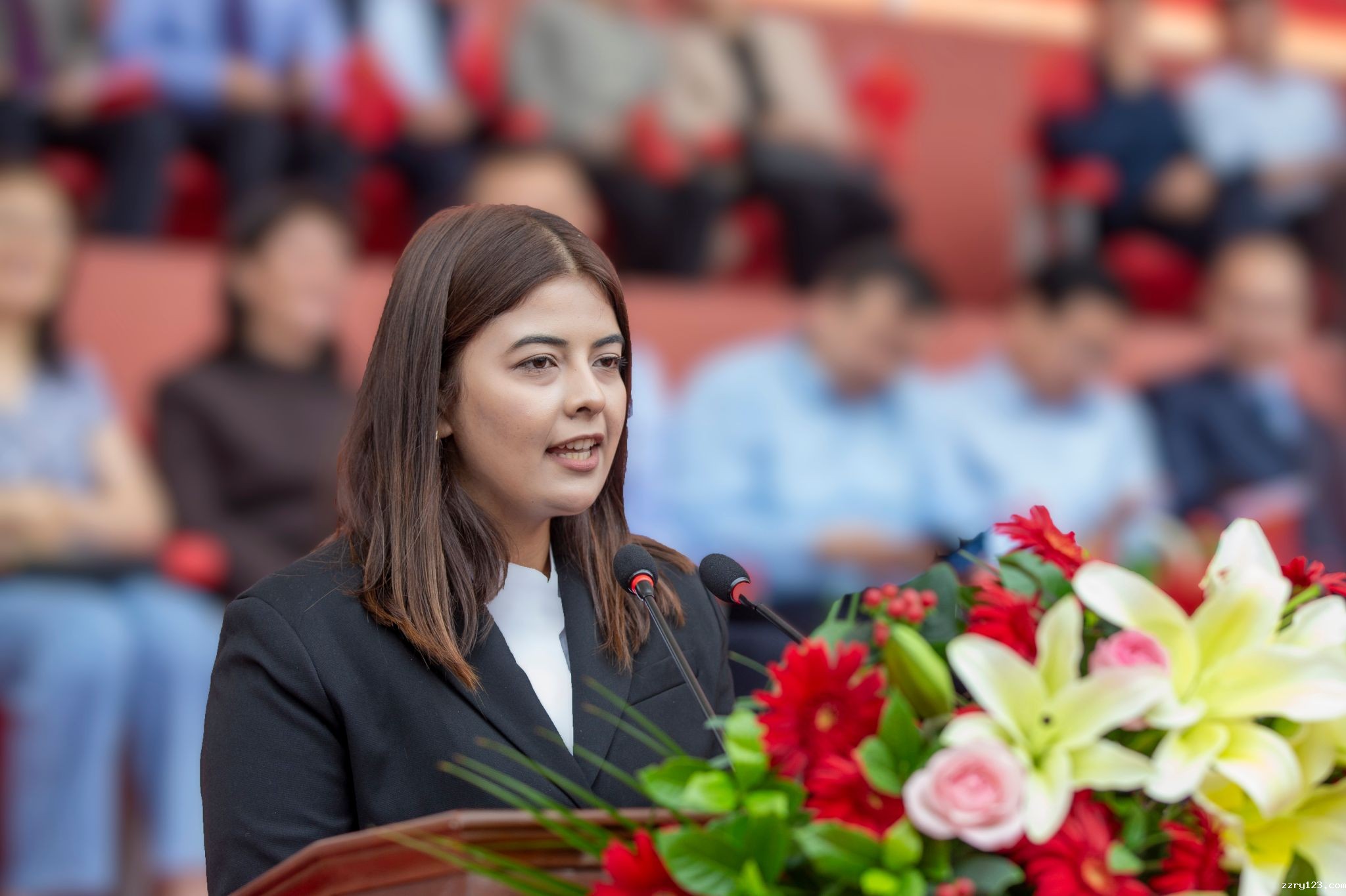 留学生新生代表、2024级中西医结合临床专业硕士研究生麦丽发言