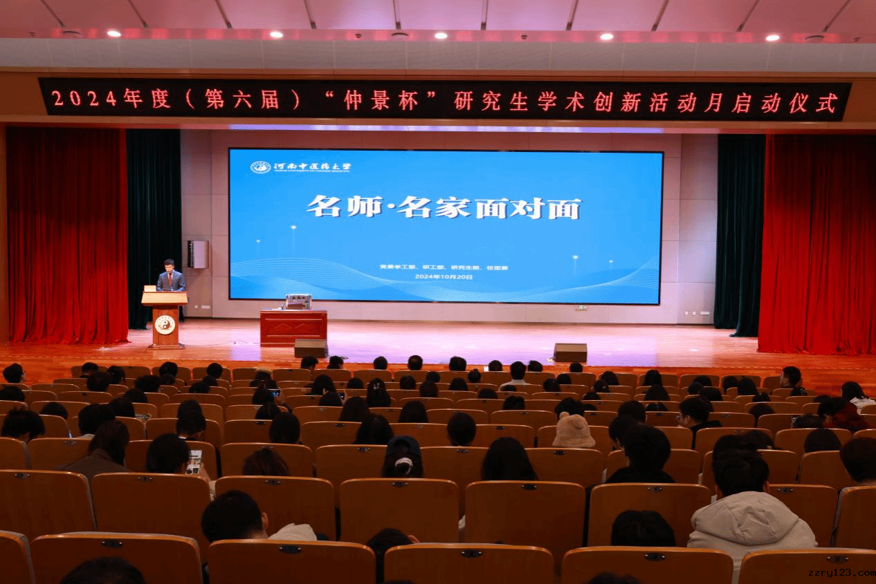 本网讯(文/于嘉明 图/大学生新媒体中心)传承岐黄薪火,勇攀创新高峰。2024年10月20日,我校2024年度(第六届)“仲景杯”研究生学术创新活动月启动仪式暨《名师·名家面对面》首场讲座在俊学楼B101报告厅拉开帷幕。校党委委员、副校长田力出席会议,学工部、研工部、研究生院、校团委等部门负责人、各培养单位研究生工作主管领导、研究生专兼职辅导员、在校研究生、本科生代表等参加活动。启动仪式由研究生院副院长张海龙主持。