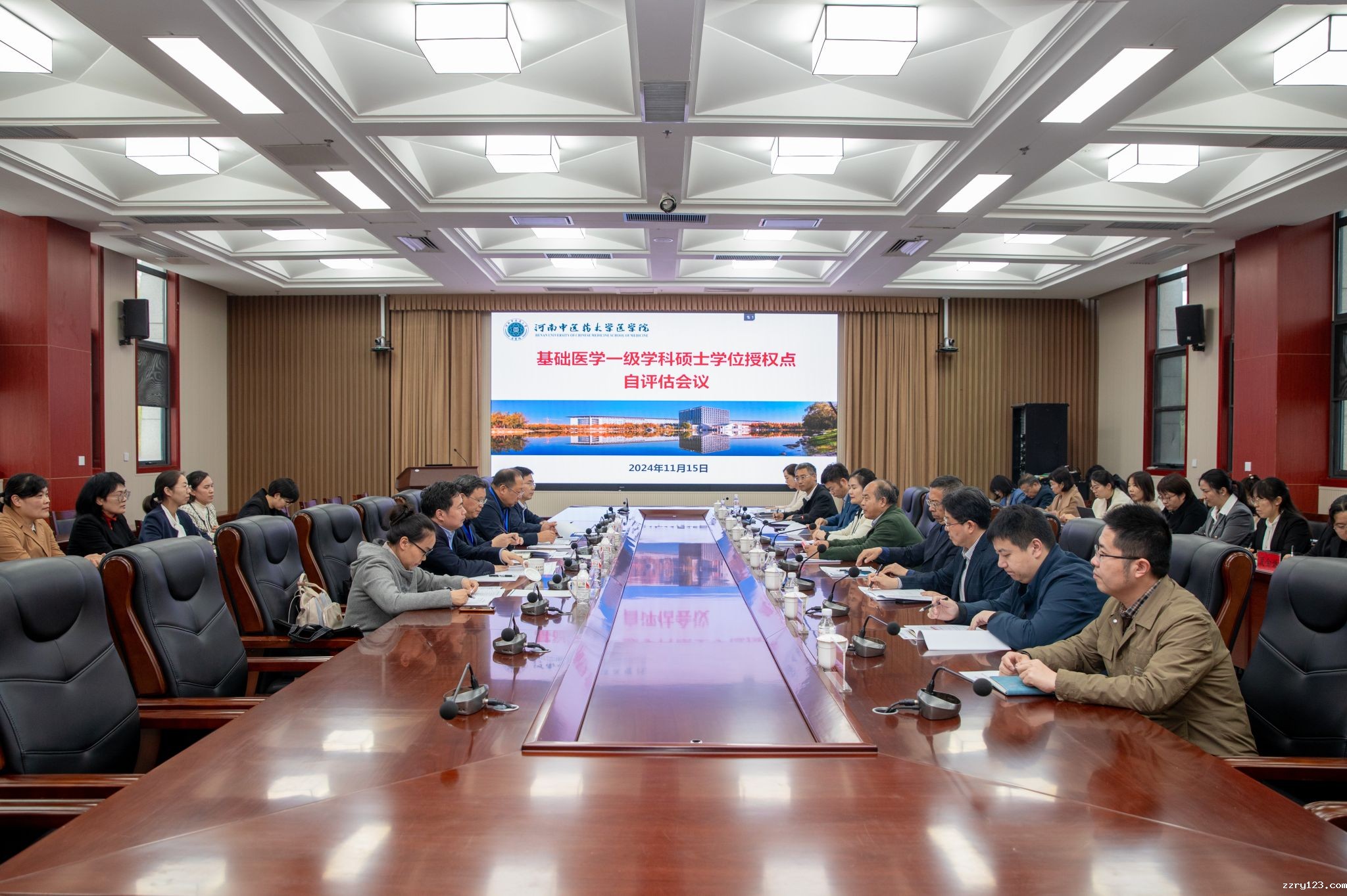 本网讯(文/李晓娟 图/郭寅虎)2024年11月15日,我校基础医学一级学科硕士学位授权点自我评估会在龙子湖校区图书馆第三报告厅顺利召开。评估会特邀国务院学科评议组专家、北京大学基础医学院党委书记万有教授担任评议组组长,郑州大学基础医学院原院长臧卫东教授、新乡医学院副校长王天云教授、河南科技大学基础医学与法医学院院长李三强教授、河南大学基础医学院副院长李霞教授作为评议组专家成员。校党委委员、副校长苗明三,研究生院副院长张海龙,学位点建设相关负责人、医学院党政领导、基础医学学位授权点各方向带头人、秘书和骨干成员以及部分教师代表出席会议。会议由医学院院长曹珊主持。