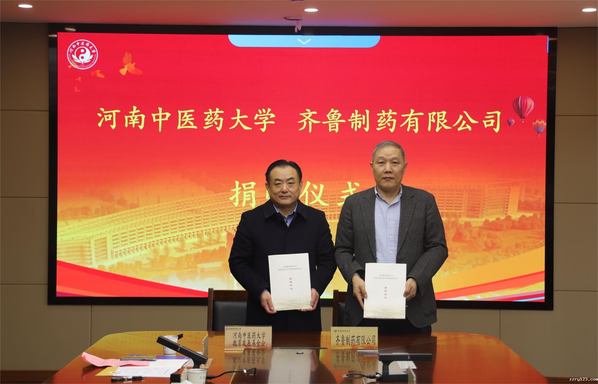 本网讯(文/图 常征辉)2024年3月21日,我校与齐鲁制药有限公司捐赠仪式在俊学综合实验楼B705会议室举行。齐鲁制药河南分公司总经理严海,学校党委副书记张加民及双方相关部门负责人出席了仪式。仪式由校长办公室副主任施淼主持。