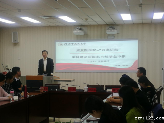 李东阳就我校国家自然科学基金近几年申报情况、中标情况及与国内同行院校、省内院校对比情况进行总结,对康复医学院近几年取得的科研成绩表示了充分的肯定,鼓励我校广大教职工凝心聚力,积极开展科研工作,使我校科研工作再上一个台阶。高松洁就我校连续中标中原领军人才项目表示祝贺,并对我校高层次人才培养工作寄予厚望。张毅就学科建设、国自然申请等相关问题为我校师生做了经验分享,他通过举例分析了国家自然科学基金会评审专家的反馈意见,指出了国自然基金申报工作中的注意事项及常见问题。张毅强调,国自然申报要有创新性,要有一定的科研基础和预实验,要选定一个研究方向坚持下去,年轻教师要提前做好准备,为国家自然科学基金的申报打下基础。