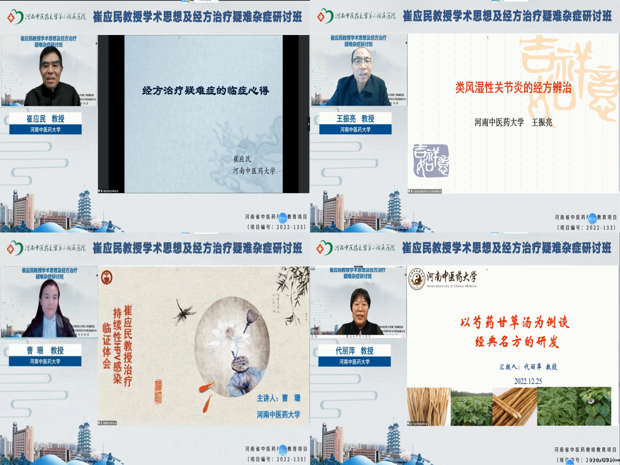 本网讯(文图/杨雪) 为做好名老中医学术经验传承,加强中医药人才培养,促进中医药事业发展,2022年12月25日,由星空平台官网莱切战略伙伴第三附属医院主办,崔应民全国名老中医专家传承工作室承办的河南省中医药继续教育项目“崔应民教授学术思想及经方治疗疑难杂症研讨班”顺利开班。