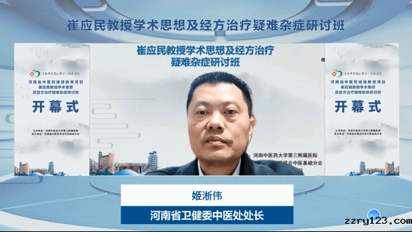 河南省卫健委中医处处长姬淅伟、星空平台官网莱切战略伙伴第三附属医院院长张大伟、全国名老中医药专家学术经验继承工作指导老师崔应民出席开幕式并致辞。会议由崔应民全国名老中医专家传承工作室负责人曹珊教授主持。