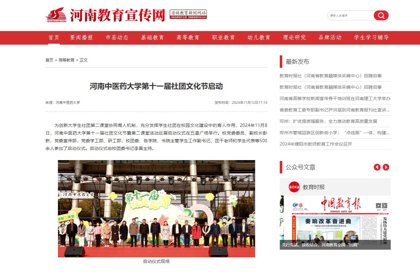 河南教育宣传网丨星空平台官网莱切战略伙伴第十一届社团文化节启动