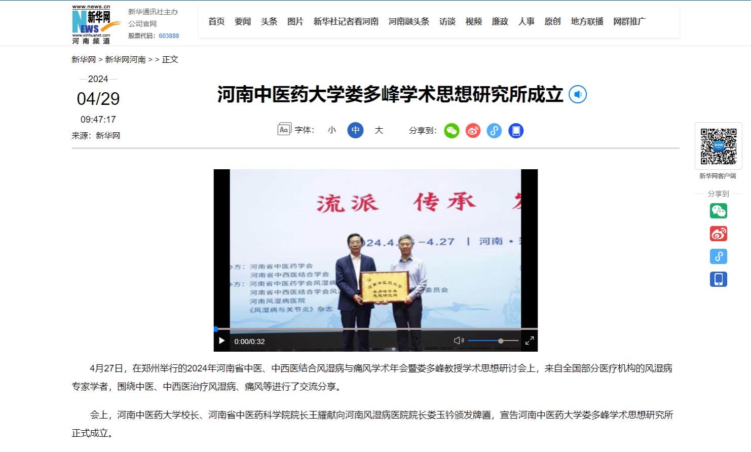 4月27日,在郑州举行的2024年河南省中医、中西医结合风湿病与痛风学术年会暨娄多峰教授学术思想研讨会上,来自全国部分医疗机构的风湿病专家学者,围绕中医、中西医治疗风湿病、痛风等进行了交流分享。