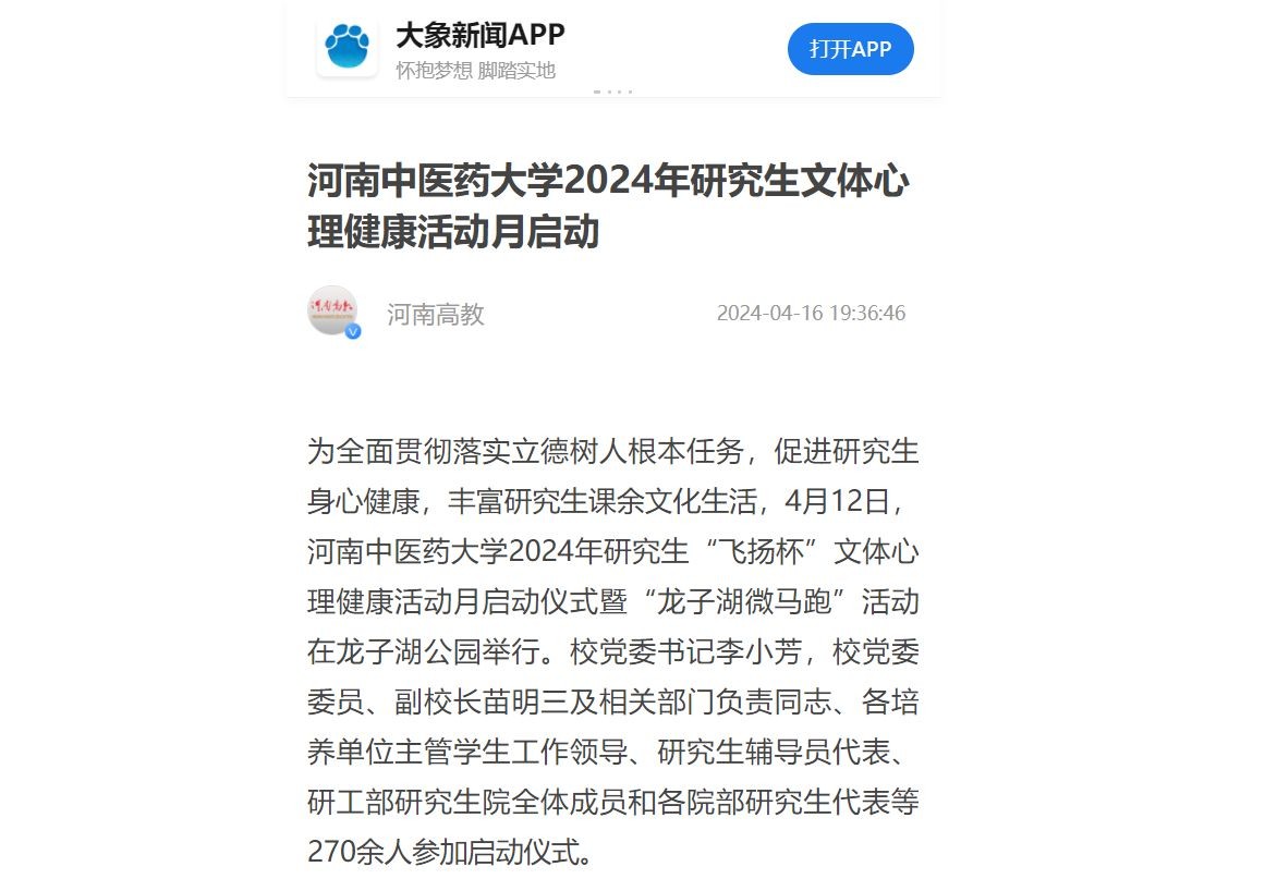 大象新闻等丨星空平台官网莱切战略伙伴2024年研究生文体心理健康活动月启动
