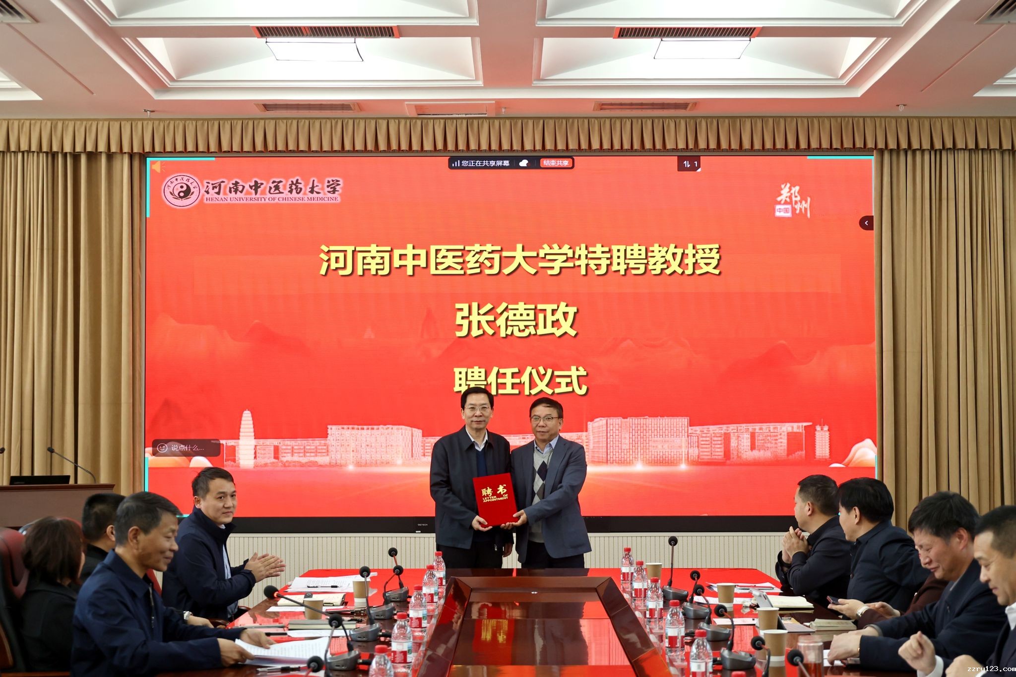 座谈会针对中医药研究项目展开交流与探讨,旨在加强产学研用深度合作,助力中医药教学科研及相关产业高质量发展,推进人工智能在中医药应用的创新发展与成果转化。会上首先进行了聘任仪式,聘任张德政为我校特聘教授;聘任付登霄为我校客座教授。