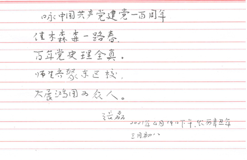 活动结束后,张磊老师即兴赋诗一首,歌颂党的百年华诞。